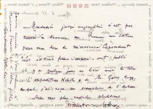 NOBILE UmbertoLettre autographe signée, adressée au docteur Fossier. Rome, 25 décembre 1970 ; 2 pages in-8° oblongues.« Il y a longtemps que vous ne m’écrivez. J’espère que vous soyez en bonne santé. Je n’ai pas des bonnes nouvelles à vous donner. les derniers mois ma santé n’ait été pas si bonne ; mais je me rappelle bien qu’en quelques semaines je serais agé de 86 ans ! » Il n’a pas réussi à trouver un éditeur « pour mon livre de mémoires. cependant Les éditions “France-Empire” ont publié il y a quelques jours un livre avec le titre « L’expédition Nobile » de M. Garry Hogg, duquel j’ai reçu un exemplaire de l’auteur. »La lettre est aussi signée de son épouse Germaine Nobile.