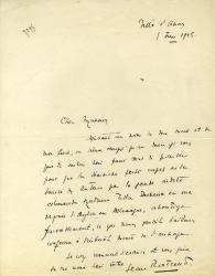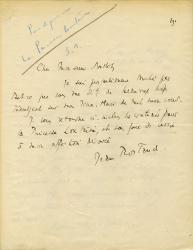 JEANNIOT GeorgesLettre autographe signée. Sans date ; 1 page in-8°. « Les Liaisons dangereuses, en préparation formeront un volume de 350 pages […] avec 30 eaux-fortes en couleurs, préface de Henri de Régnier. Lettres ornées en couleurs gravées sur Bois et un dessin original prix 1000 f, tirage 50 exemplaires ».