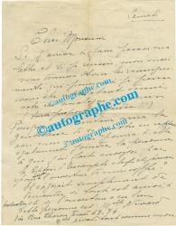 VAILLANT Jean-Baptiste-PhilibertLettre autographe signée, adressée à M. Télèphe Desmartis. Paris, le 28 mars 1870 ; 4 pages in-4°. Longue lettre relative à un projet de transport de navires par canaux ou chemins de fer entre Sète et Bordeaux. Il soulève les différentes objections, notamment financières, qui s’opposent à ce projet. « Je me demande si Sète peut recevoir des bâtiments aussi grands que ceux que vous voulez transporter. Je ne crois pas qu’il y ait des profondeurs d’eau suffisantes. » Il regrette « que dans les études du chemin de fer du Midi, on n’ait pas songé à cette éventualité d’un grand moyen faisant marcher nos flottes comme des régiments d’infanterie en les mettant en face des Anglais dans l’océan, le lendemain du jour où elles les connaissent dans la Méditerranée ! C’est une grande idée, pourra-t’elle jamais se réaliser ? » Belle lettre.