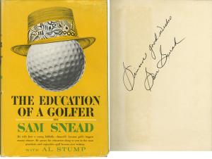 SNEAD Samuel Jackson« THE EDUCATION OF A GOLFER ». 1962 ; 24 x 16 cm. Éditions Simon and Schusters. Envoi autographe signé : « Sincere good wishes Sam Snead. »