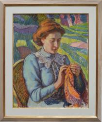 PESKÉ Jean (Jan Miroslaw Peszke, dit)Femme à la broderie. Pastel signé « Peské » en bas à droite.58 x 47 cm.La pastel représent la femme de l’artiste.