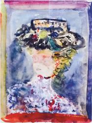 TERECHKOVITCH Constantin (ou Kostia)Femme au chapeau.Gouache sur papier. 51 x 39 cmSigné et daté en bas à droite « C. Terechkovitch / Printemps 1956 »Au verso : Deux femmes au vase de fleurs. Lithographie en noir. Provenance : Vente Nantes, Couton & Veyrac, 9 novembre 2004, lot 303.Collection particulière, France.L’authenticité de cette œuvre a été confirmée par Madame France Terechkovitch.Cette gouache représente la fille de l’artiste.