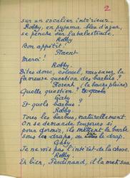 PAGNOL Marcel [Aubagne, 1895 - Paris, 1974]Deux manuscrits autographes intitulé « La Belle et la Bête / Le Petit Ange », 4 janvier 1940 à 4 heures ¼ et Valberg lundi 28 mars 1950 ; 6 et 78 pages in-4 sur feuillets de cahier d’écolier, sous couverture titrée, numérotation à l’encre, corrigée au crayon rouge. Deux manuscrits de travail d’une pièce débutée en 1940, reprise en 1950, inachevée et restée inédite. Les six premières pages sont un synopsis, non dialogué, mêlé de notes d’un premier jet, résumant l’histoire de Gaby, de mèche avec son père pour escroquer l’inventeur d’un appareil de radiologie qui vaut des millions. La jeune femme se rend compte de la noblesse d’âme du médecin et décide de le sauver des griffes de son père et de ses complices. Le second manuscrit, dialogué cette fois, avec des corrections, des onglets rajoutés, des passages biffés, reprend la même trame avec quelques variantes : l’action se déroule à Cannes. Le père de Gaby et ses complices fomentent un plan pour forcer un jeune savant nommé Ferdinand à épouser sa fille sous la communauté de biens, ayant appris qu’un procès gagné le rendait richissime. Ledit plan fonctionne, Ferdinand déclare son amour à Gaby mais n’ose y croire, se croyant plus pauvre qu’elle. Sincèrement touchée, Gaby lui propose une promenade romantique avant le mariage prévu pour le soir même. Lors de la scène finale, les escrocs se réjouissent de ce dénouement, qui reste à leur profit : « Florent – Et on peut dire que c’est un génie dans un cœur d’or… Vernis ─ Et on peut dire aussi qu’il est fait comme un rat, qu’il l’a dans l’os, et qu’on l’a possédé jusqu’à l’âme du cœur du trognon ». Il est probable que Pagnol abandonna l’idée du premier titre après la sortie du film de Cocteau, La Belle et la Bête en 1946, film auquel il devait initialement participer mais auquel il renonça après avoir rompu avec Josette Day, l’interprète du personnage de Belle. Le « scénario » de ce « Petit Ange » a été adapté en bande dessinée par Luc Brahy et Véronique Grisseaux sous le titre Gaby ou la Belle et l'argent (Michel Lafon, 2024).