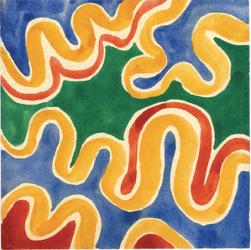 DELAUNAY SoniaProjet pour tissus. Gouache à motifs serpentins. 10 x 10 cm. Cachet de la collection Robert Perrier, collection Sonia Delaunay au dos.