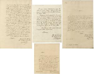 Ensemble de 3 lettres des exécuteurs testamentaires: Montholon, Bertrand, Marchand et une lettre de Las Cases