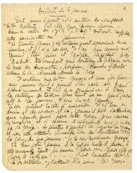 CREVEL RenéManuscrit autographe sur Diderot. Ensemble de 14 pages in-4°, recto-verso, numérotées au crayon 1 à 12; avec des têtes de paragraphes. Il cite beaucoup Diderot : « Diderot et les femmes ». 1 page 1/2 in-4°.« Tout jeune il avait rodé autour du comptoir de Mlle Babuti. Cest elle que Greuze épousa. Dans le Salon de 1765, p. 349, Diderot rappelle cette passionnette de jeunesse.Le peintre (Greuze) est certainement amoureux de sa femme, et il na pas tort. Je lai bien aimée moi quand jétais jeune et quelle sappelait Mlle Babuti. Elle occupait une boutique de libraire sur le quai des Augustins, blanche et droite comme le lis, vermeille comme la rose... » « À propos de la Babuti ». 1 page in-4°.« Diderot a déjà un peu critiqué Greuze puis quand Greuze sest fait le peintre de la morale et de la vertu, il la loué très fort. Greuze passait devant cette boutique quelques jours après son retour de Rome. Comme Diderot , comme Diderot ; il revenait, puis un beau jour, à force de revenir, il se mariait, ou plutôt il se trouvait marié sans avoir fait grand chose pour cela, il prenait bien vite son parti dêtre heureux. Sa femme était charmante. Elle avait la jolie tête que les pinceaux de son mari ne pourront oublier » « Sentiment et culte de la famille ». 4 pages in-4°.« Limage de cette mère tendre tenant entre ses bras son enfant malade et le reposant sur son sein et cela pendant des heures entières me revient quelque fois avec lémotion la plus ». Il évoque la mort du père de Diderot. « Amour de Diderot et de sa femme ». 1 page 1/2 in-4°.« Mais cet amour vite troublé par la passion de lEncyclopédiste pour Mme de Puisieux pour laquelle il écrit Pensées philosophiquesInterprétation de la natureBijoux indiscretsDiscours sur la vertu et les moeurs.Elle le trompa durant sa captivité à Vincennes.Mme Diderot ne reconquiert pas le coeur de son mari » « Lettres à Sophie Volland ». 2 pages in-4°.« Écrite à Paris - 10 mai 1759. Je portais tout à travers les objets des pas errants et une âme mélancolique. Les autres nous dénonçaient à grands pas et nous les suivions lentement, le baron de Gleichen et moi. Je me trouvais bien à côté de cet homme, cest que nous éprouvions [ ] de nous, un sentiment commun et secret. Cest une chose incroyable comme les âmes sensibles sentendent presque sans parler !! » « Les bijoux indiscrets ». 2 pages in-4°.« Diderot style merveilleusement vivant sait rendre la vie grouillante. Page 190 (Les Musellieres)Diderot cest la vie du XVIIIe siècle Une vie colorée, dans la rue qui prépare » « Bibliographie ». 1 page in-4°.René Crevel cite les ouvrages quil a consulté. (Barbey dAurevilly, Naigeon, Jules Janin, etc.) « Lettres sur les aveugles et les S.M. ». 1 page in-4°.« Voir p. 255. Bijoux indiscrets, où Diderot définit les êtres par leur fonctions. [ ] Comme je nai jamais douté que létat de nos organes et de nos sens nait beaucoup dinfluence sur notre métaphysique et sur notre morale, et que nos idées les plus purement intellectuelles, si je puis parler ainsi, ne tiennent de fort près à la conformation de notre corps » « Diderot Les Salons ». 2 pages 1/2 in-4°.Il évoque les salons de 1759 et 1761.Les manuscrits de cet écrivain mort à 35 ans sont très rares.