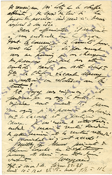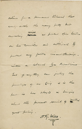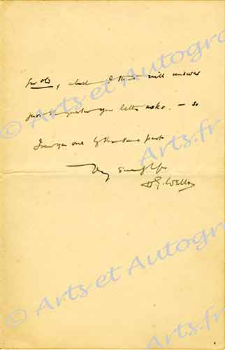 Lettre autographe signéeLettre autographe signée [adressée à M. d’Humières]. [Vers 1910] ; 1 page 1/2 in-8°, en anglais, sur papier à l’adresse « Spade House Sandgate ».« J’ai été absent pendant un certain temps et je n’ai pu vous répondre...
