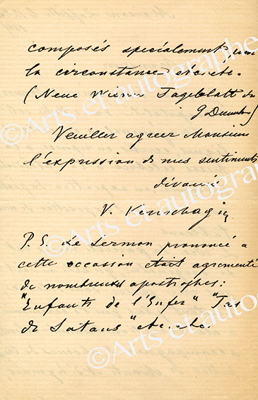 Ensemble de 2 lettres autographes signées2 lettres autographes signées, adressées à G. Geffroy :— Maisons-Laffitte, 12 décembre 1925 ; 2 pages in-8°, en français. Il demande l’hospitalité de quelques lignes dans le journal La Justice en « réponse à la messe...