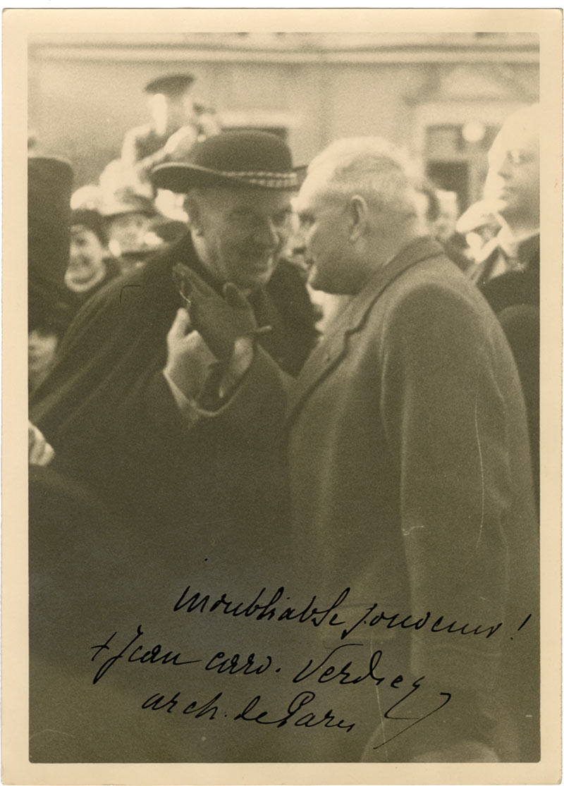 Photographie dédicacéePhotographie dédicacée. 18 x 13 cm. Photographie du Courrier, Saint Nazaire.« Inoubliable souvenir Jean card. Verdier, arch. de Paris. »