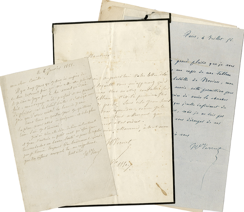 Ensemble de 3 lettres autographes signéesEnsemble de 3 lettres autographes signées : Lettre à M. A. Lorentz. Versaillles, le 22 octobre 1850 ; 1 page in-8° sur papier de deuil. « Je reçois aujourdhui du 21 octobre par laquelle vous mapprenez quil y a trois semaines...