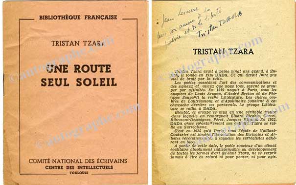 Une route seul soleil« Une route seul soleil ». Sans date [1944] ; in-16, 16 pages, agrafé. Édition originale de cette plaquette parue dans la clandestinité. Envoi autographe à Jean Lescure. « À Jean Lescure pour son amour de la poésie et de la...