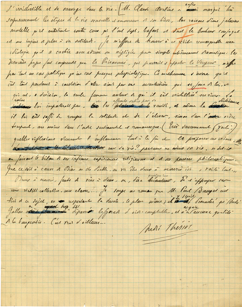 Manuscrit autographe signéManuscrit autographe signé « Les livres ». [1936] ; 6 pages in-4°. Article de critique littéraire pour sa chronique Les livres dans le journal Le Temps.Il évoque les dernières parutions : Roland de Maret : La maison du chanoine...