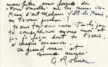 Carte autographe signéeCarte autographe signée, adressée à Jean-Marc Campagne, journaliste à Paris-Jour. [1979] ; 13 X 8 cm, enveloppe jointe. « Merci de l’envoi de Nice Matin. Tu es toujours aussi jeune et aussi enthousiaste dans tes manifestations et...