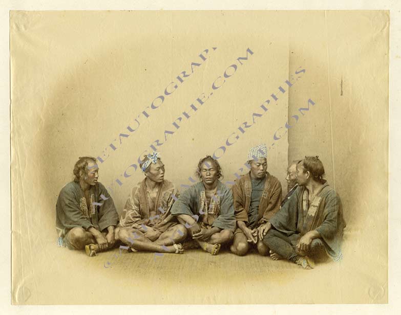 Photographie XIXe siècle en couleursPhotographie XIXe siècle en couleurs; 20 x 26 cm, sur papier albuminé, trace de pliure à droite. Scène de 6 personnages assis.