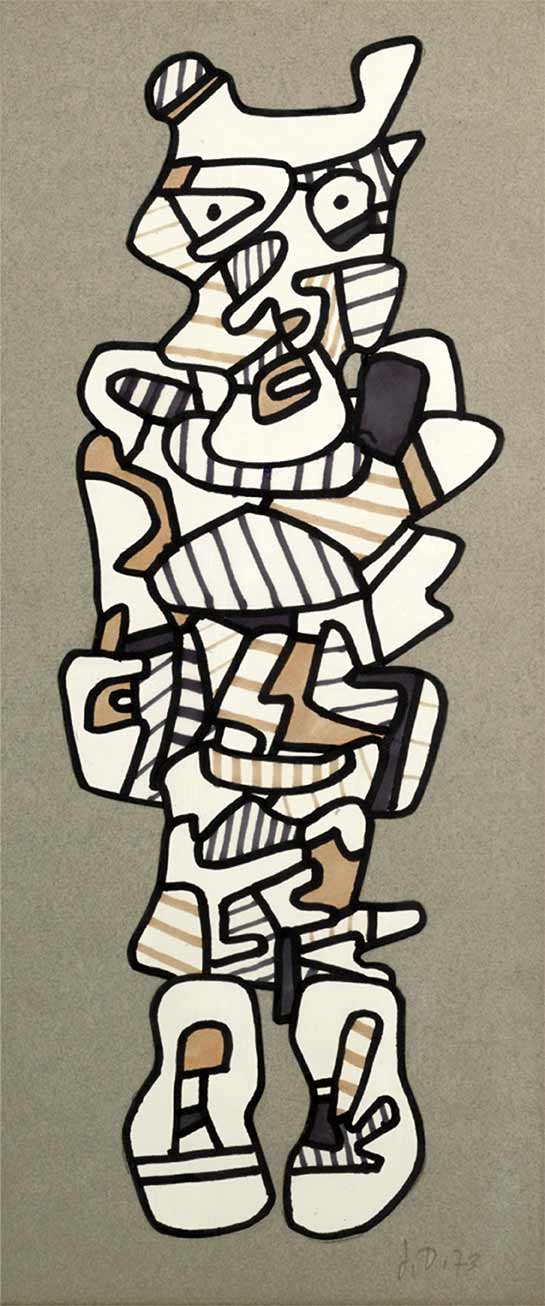 Feutre et papier collé sur carton, signéPersonnageSigné de ses initiales « J.D » et daté « 73 » ; daté du 19 mars 1973 au verso. Feutre et papier collé sur carton. 41,8 x 19 cm. Provenance: — Galerie Beyeler, Basel— Private Collection— Sotheby's, New...