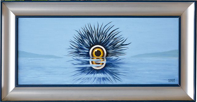 Huile sur panneau, signée en bas à droite.L’oeil à l’horizon.Huile sur panneau, signée en bas à droite. 27 x 65 cm.