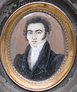 Miniature ovale signée « Mousis 1829 »Portrait d'homme. Miniature ovale signée « Mousis 1829 » ; 5 X 4 cm.