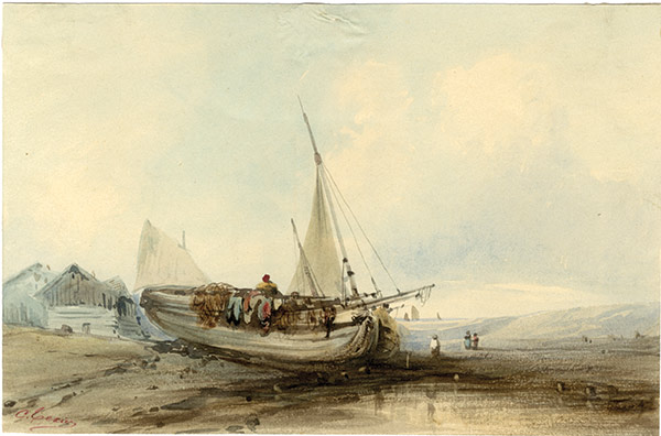 Marine.Marine. Aquarelle. Signée en bas à gauche « C. Texier ». 14 x 21 cm. Petite restauration au milieu en haut.