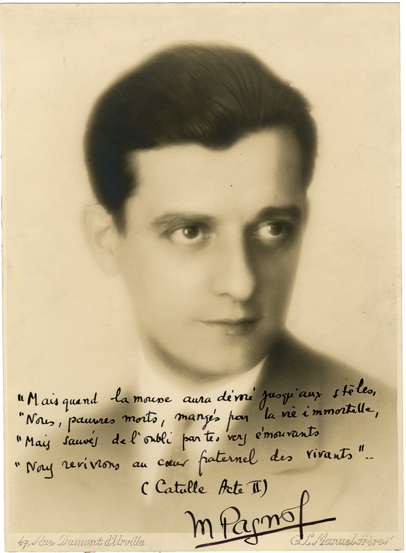 Photographie avec quatrain autographe signéPhotographie avec quatrain autographe signé. 28 X 20 cm. Photographie des frères Manuel. Belle photographie de jeunesse recouverte d’un extrait de Catulle, acte II : « Mais quand la mousse aura dévoré jusqu’aux stèles,Nous...
