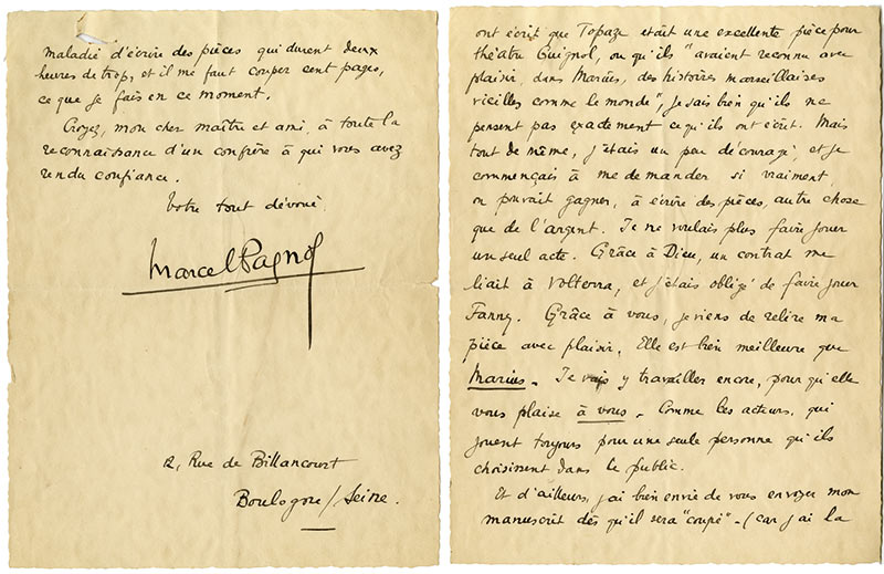 Lettre autographe signéeLettre autographe signée, adressée à un critique. Boulogne-sur-Seine [octobre 1931] ; 5 pages in-4°. Il remercie son correspondant pour sa lettre : « C’est un bien grand encouragement, pour un auteur dramatique […]. En général...