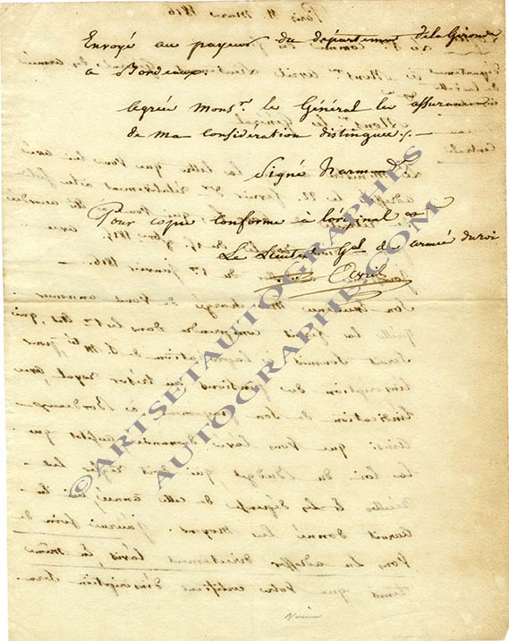 Lettre signéeLettre signée (sans doute autographe). Paris, 11 mars 1816 ; 1 page 1/2 in-4°. Copie d’une lettre d’un commis des Finances sur sa solde de retraite qui lui a été accordée par décision royale du 15 novembre 1815.