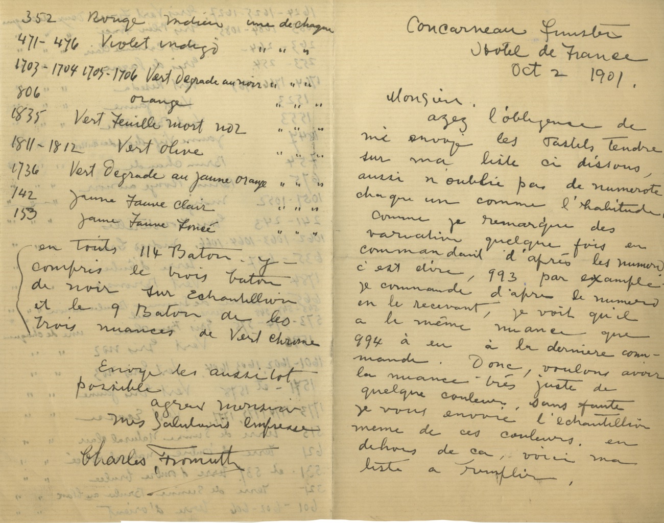 Lettre autgraphe signéeLettre autographe signée. Concarneau, Hotel de France, 2 octobre 1901. ...