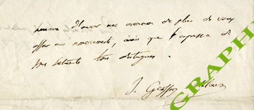 Lettre autographe signéeLettre autographe signée. Port-Marly, le 5 juillet 1852 ; 1 page 1/4 in-8°. « Je garde depuis bien des jours déjà, les trois volumes que vous avez bien voulu me confier, et je suis obligé de vous les demander pour une semaine encore....