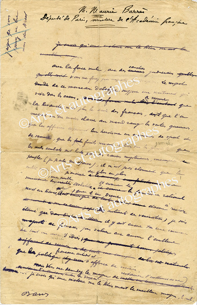 Manuscrit signéManuscrit signé avec corrections autographes « José Maria Sert ». Brangues, 8 décembre 1945 ; 9 pages 1/2 in-4°. Très bel hommage au peintre catalan José-Maria Sert, décédé le 27 novembre 1945. Le texte a paru dans Le Figaro du...