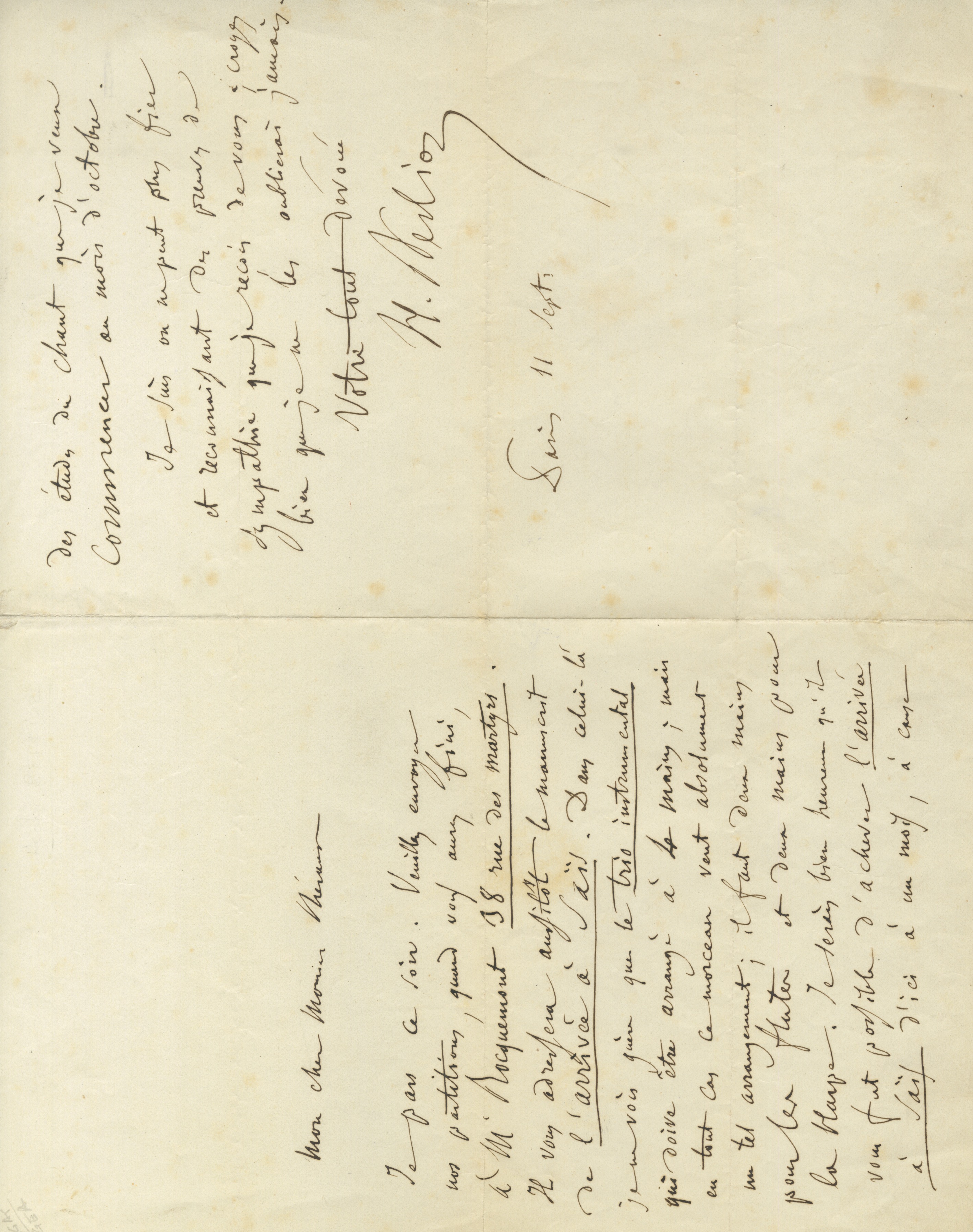 Lettre autographe signéeLettre autographe signée adressée à Amédée Méreaux1). Paris, 11 septembre [1854/55] ; 1 page 1/2 in-8°. ...