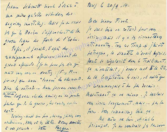 Ensemble de lettres autographes signéesCorrespondance de 13 lettres autographes signées et 1 carte autographe signée, adressées à son ami Léon Pivet. Paris, 1913-1940 ; formats divers. Il est question de son séjour en Suisse (1913), « 1800 mètres d’altitude, silence....