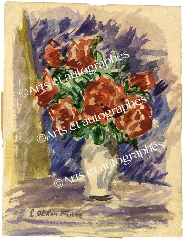 Gouache originale signée.Pot de fleurs.Gouache originale signée.Sans date (vers 1935).28,5 x 22 cm.
