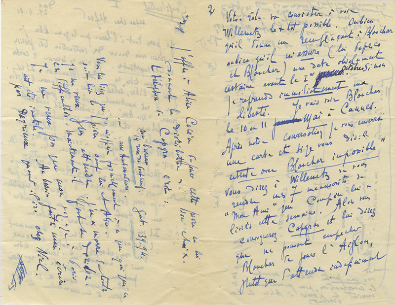 Ensemble de lettres autographes signéesEnsemble de 8 lettres autographes signées. De 1934 à 1941 ; formats divers, principalement in-4° et in-8° :— « Relisant ma lettre je crois que le mieux est que vous téléphoniez immédiatement à Willemetz. […] Dites-lui que je...
