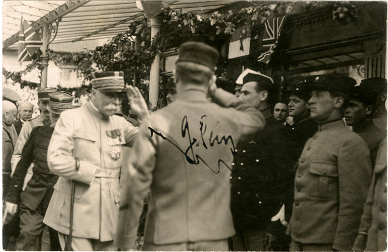 Photographie signéePhotographie signée « G. Pau ». Photographie prise à Gunten, Suisse, le 4 juin 1917, lors de sa visite des Internés à Montana. 9 x 13,7 cm.