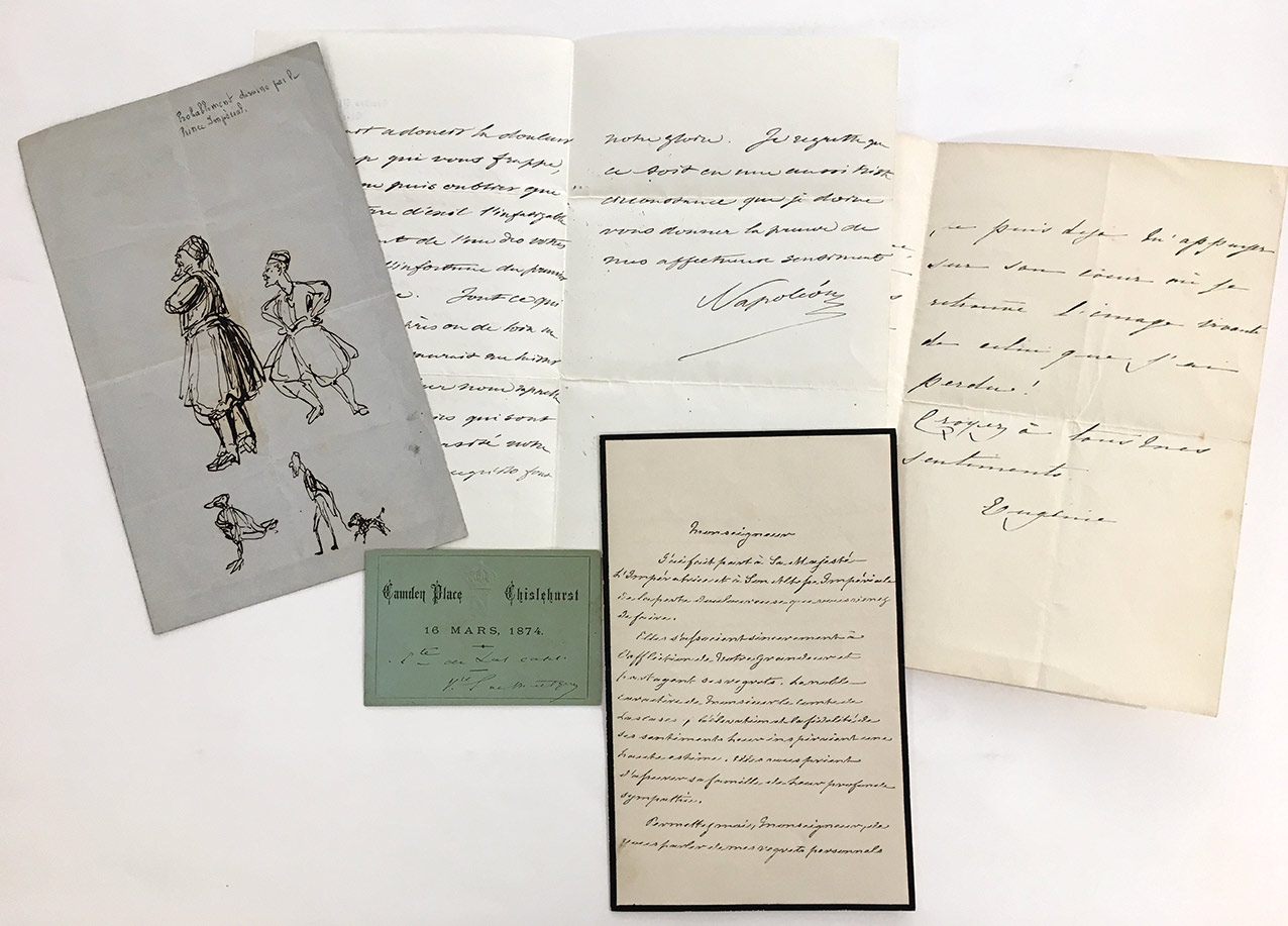 Lettre autographe signéeLettre autographe signée « Napoléon », adressée au comte Barthélemy de Las Cases fils. Camden Place, Chislehurst 10 décembre 1877; 2 pages et demie in-8°, enveloppe jointe.Lettre de condoléances au petit-fils du mémorialiste de...