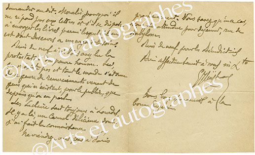 Lettre autographe signéeLettre autographe signée [adressée à Gustave Kahn]. 1 page in-8°. ...