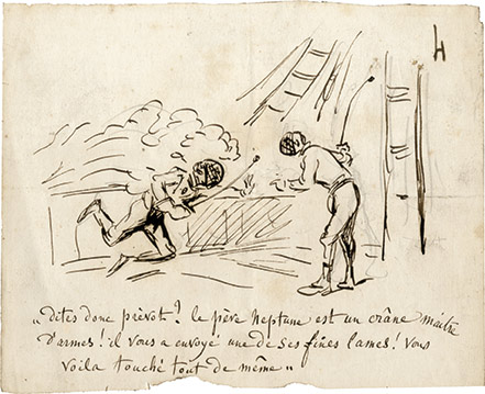 Dessin autographe caricaturalDessin original. Seconde moitié du XIXe siècle. 12,5 X 15,5 cm. Dessin paru dans le Charivari. ...