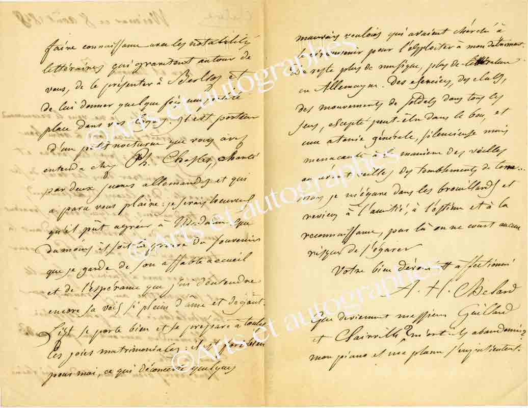 Lettre autographe signéeLettre autographe signée, adressée à Jules Janin. Weimar, 8 août 1848 ; 3 pages in-8°. Il lui recommande son fils. « Jugez-le, soyez lui sévère et aidez-le à entrer dans les voies de sa capacité. Des leçons d’allemand, des...