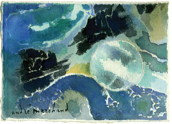 Aquarelle sur papier buvard, signéeLa lune. Aquarelle sur papier buvard. Signée en bas à gauche. 14 x 19 cm.