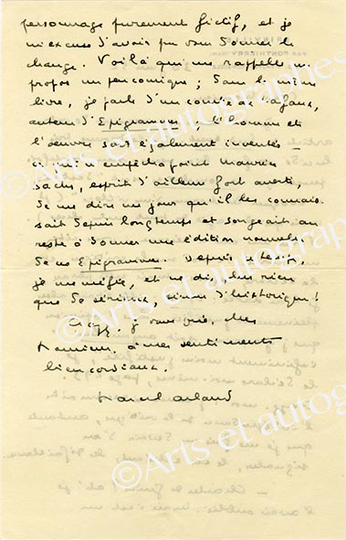 Lettre autographe signéeLettre autographe signée, adressée à Henri Amouroux. 30 juin 1952; 2 pages in-8°. En-tête gravé à son adresse à Brinville. Belle lettre concernant son ouvrage La Consolation du voyageur, paru chez Stock, Delamain et Boutelleau en...