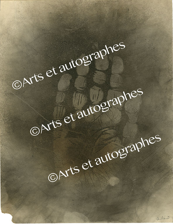 Empreinte de la main droite de Marcel ArlandEmpreinte de la main droite de Marcel Arland sur une feuille de papier noircie à la fumée et ayant servi à la réalisation du livre La Main de l’écrivain, publié chez Stock.