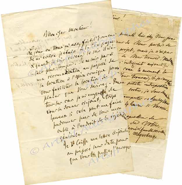 Lettre autographe signéeLettre autographe signée. « Lundi » [circa 1854] ; 1 page 1/2 in-8°. « Le jour où vous m’avez fait l’honneur de m’écrire j’étais à la campagne & quand je suis revenu, le soir il n’était plus temps. Je ne sais pas si ma...