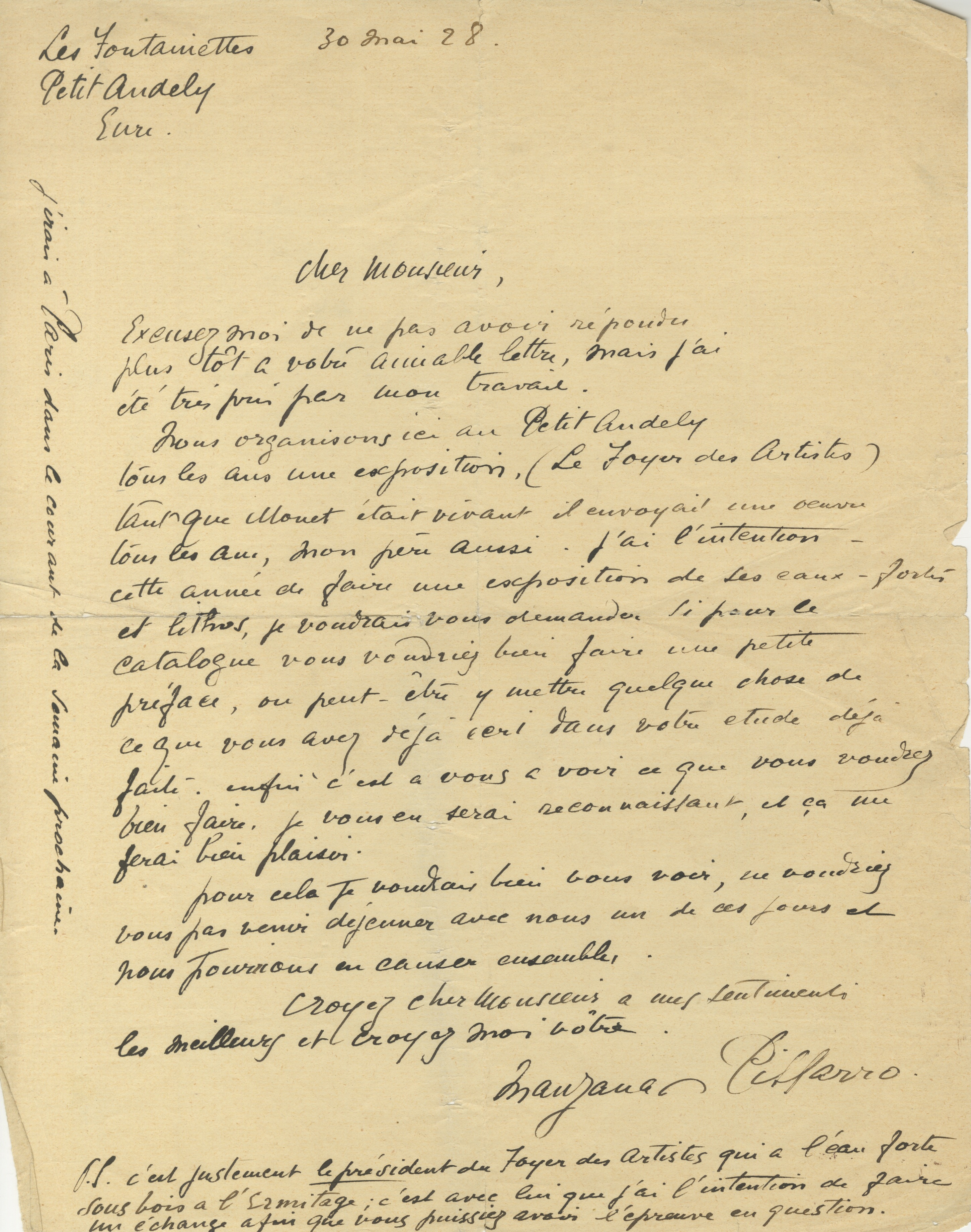Lettre autographe signéeLettre autographe signée, adressée [ à Claude Roger-Marx ], Petit Andely ( Eure ). 30 mai 1928 ; 1 page in-4°. ...