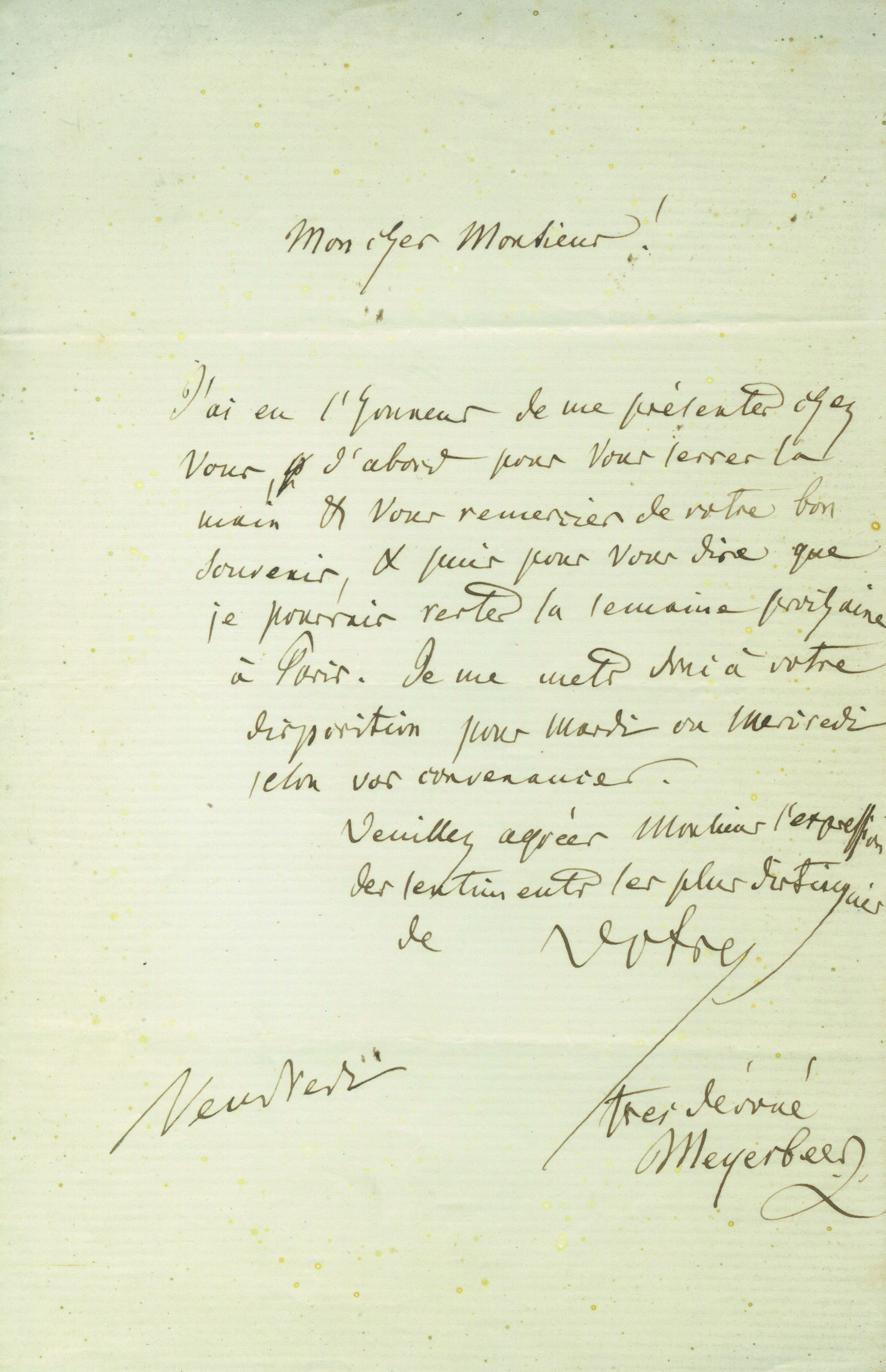 RéserverMEYERBEER Giacomo [Berlin, 1791 - Paris, 1864], compositeur allemand.