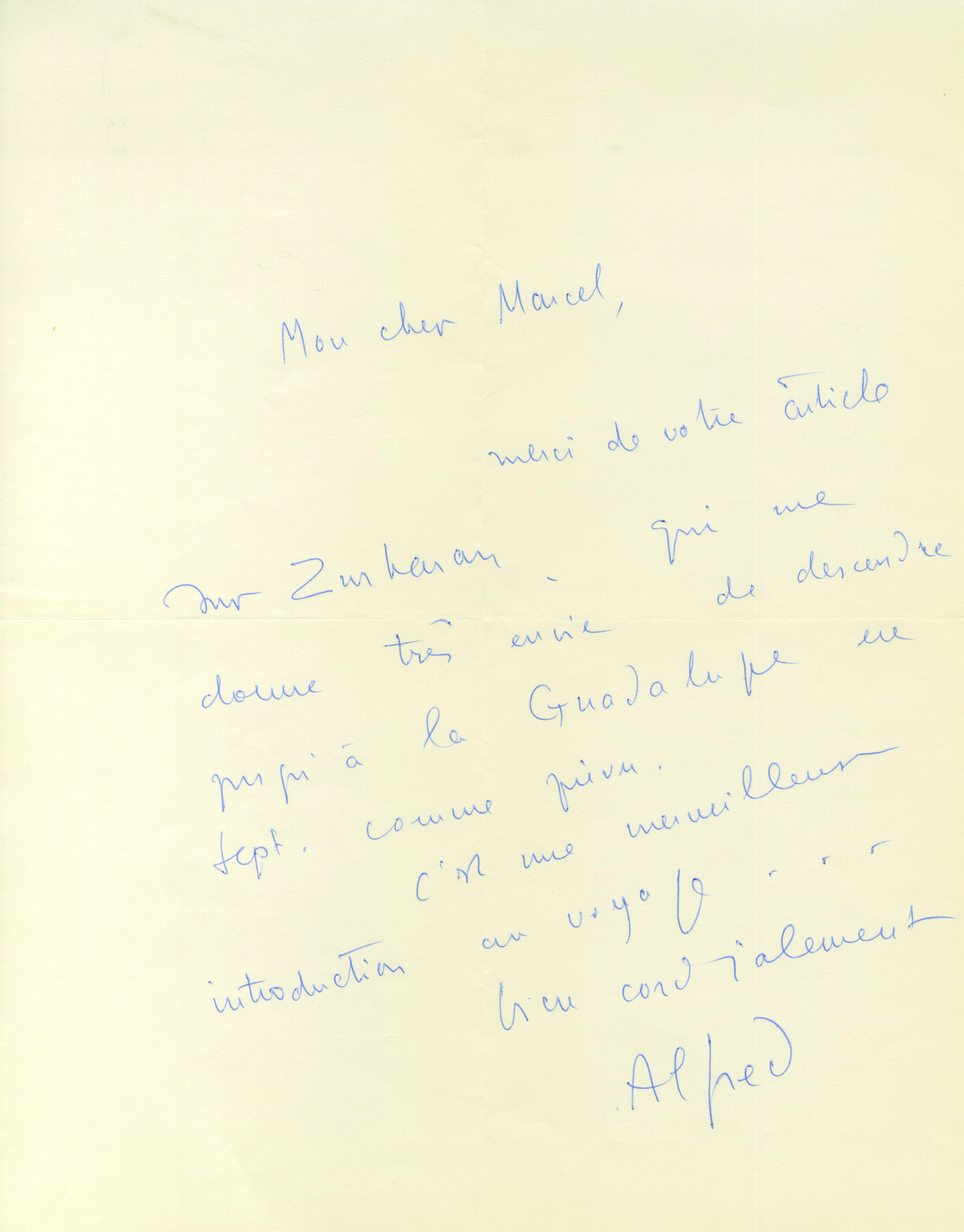 Lettre autographe signée « Alfred » adressés à Marcel Schneider ; 1 page in-4°