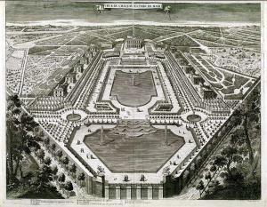 Très belle gravure de Pierre Le Pautre gravée par Sébastien Antoine. Belle perspective du chateau de Marly et du parc. |